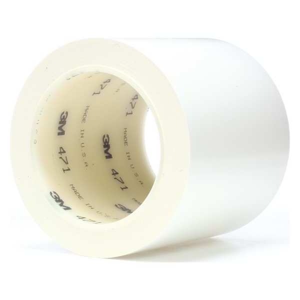 Description Floor Marking Tape, Continuous Roll, Solid, White, 4 in, 108 ft, 4.1 mil, Vinyl, 3M(TM), Series 471, Legend No Legend, Glow In The Dark No, Retroreflective Grade Non-Reflective, Package Quantity 8