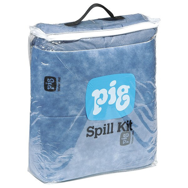 Description Spill Kit/Station, Fluids Absorbed Water, Volume Absorbed Per Kit 5 gal, Container Type Bag, 0.05 cu ft Container Capacity, 6 3/4 in W x 15 1/2 in L x 17 3/4 in H Container Size, Blue, Filled, Sorbents Included (10) 15 in W x 19 in L Water Absorbent Pads, (3) 3 in Dia x 4 ft L Water Absorbent Socks, Additional Components Included Clear Vinyl Bag, Lockable No, Static Dissipative No, UV Resistant No, Product Weight 6 lb, KIT, Includes Mounting Fasteners No, Land Fill Disposable No