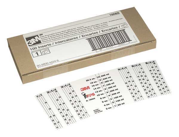 Description Mix Ratio Insert, Plastic, Size Regular, For Use With 3M(TM) PPS(TM) Paint Preparation Systems, Package Quantity 100
