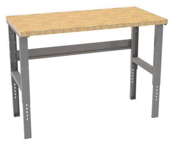 Description Workbench, Height Adjustability Adjustable Height, Top Material Butcher Block, Assembly Unassembled, Color Gray, Frame Material Steel, Leg Type Straight Leg, Maximum Adjustable Height 41 3/8 in, Minimum Adjustable Height 35 3/8 in, Non-Metal Top Thickness 1 3/4 in, Number of Cabinets 0, Number of Drawers 0, Number of Knockouts 4, Included Components Stringer, Number of Outlets 0, Number of Shelves 0, Overall Depth 30 in, Overall Fixed Height Not Applicable, Overall Load Capacity 3,000 lb