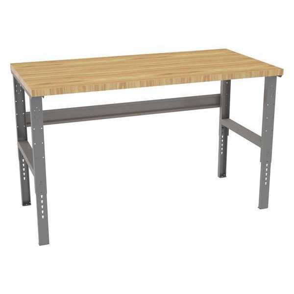 Bolted Workbench, Butcher Block, 60 in W, 35-3/8 in to 41-3/8 in Height, 3,800 lb, Straight