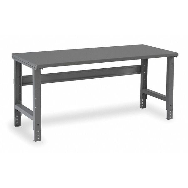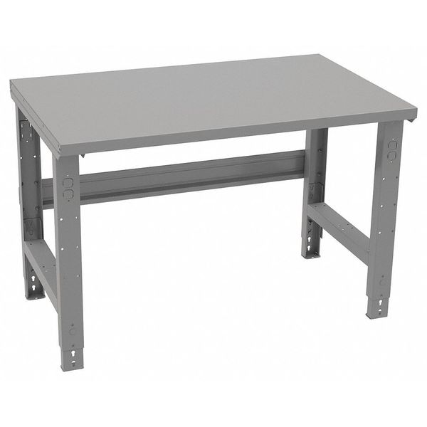 Description Workbench, Height Adjustability Adjustable Height, Top Material Steel, Assembly Unassembled, Color Gray, Frame Material Steel, Leg Type Straight Leg, Maximum Adjustable Height 36 7/8 in, Minimum Adjustable Height 27 7/8 in, Non-Metal Top Thickness Not Applicable, Number of Cabinets 0, Number of Drawers 0, Number of Knockouts 4, Included Components Stringer, Number of Outlets 0, Number of Shelves 0, Overall Depth 30 in, Overall Fixed Height Not Applicable, Overall Load Capacity 4,000 lb