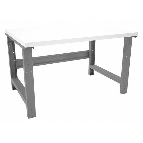 Description Workbench, Height Adjustability Adjustable Height, Top Material Laminate, Assembly Unassembled, Color Gray, Frame Material Steel, Leg Type Straight Leg, Maximum Adjustable Height 35 3/8 in, Minimum Adjustable Height 27 7/8 in, Non-Metal Top Thickness 1 1/2 in, Number of Cabinets 0, Number of Drawers 0, Number of Knockouts 4, Included Components Stringer, Number of Outlets 0, Number of Shelves 0, Overall Depth 36 in, Overall Fixed Height Not Applicable, Overall Load Capacity 1,000 lb