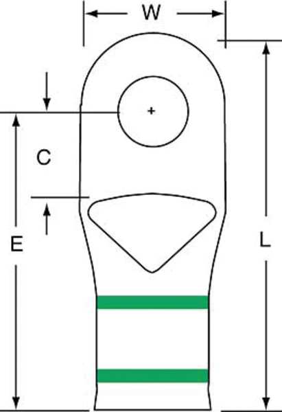 SKU G5963151CategoriesDescription One-Hole Lug Compression Connector, Barrel Size Short, Color Code Green, Die Code 11, Tongue Angle Straight, Tongue Width 0.65 in, For Conductor Material Copper, For Stud Size 5/16 in, For Stranded Copper Wire Size - Maximum 1 AWG, Inspection Hole No, Hole Center to Center Not Applicable, Material Copper, Termination Style Crimp, Seam Style Seamless, Standards CSA Certified, UL Listed, Number of Holes 1, RoHS Compliant Yes, Barrel Inside Diameter 0.36 in, Barrel Style SeamlessgraingerSKU: 2JKK5, mscSKU: , zoro_no: G5963151, mongo_id: 65bbe7439a749db82272bd2f