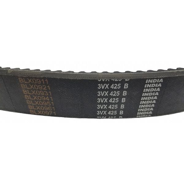 SKU G6906873CategoriesDescription Banded V-Belt, Belt Material Polyester Cords, Rubber, Edge Construction Wrapped, Industry Number 3/3V425, Number of Bands 3, Outside Length 43.1 in, Reinforcing Cord Material Polyester, Thickness 3/8 in, Top Width 1 1/8 in, Belt Trade Size 3V, V-Belt Type Banded, Wedge, Maximum Operating Temperature 194 Degrees F, Minimum Operating Temperature -22 Degrees F, Resistance Properties Heat Resistant, Oil Resistant$34.81 / eachWeb price3/3V425 Banded V-Belt, 43-1/8" Outside Length, 1-1/8" Top Width, 3 RibsSKU G6906873CategoriesDescription Banded V-Belt, Belt Material Polyester Cords, Rubber, Edge Construction Wrapped, Industry Number 3/3V425, Number of Bands 3, Outside Length 43.1 in, Reinforcing Cord Material Polyester, Thickness 3/8 in, Top Width 1 1/8 in, Belt Trade Size 3V, V-Belt Type Banded, Wedge, Maximum Operating Temperature 194 Degrees F, Minimum Operating Temperature -22 Degrees F, Resistance Properties Heat Resistant, Oil Resistant$34.81 / eachWeb price -