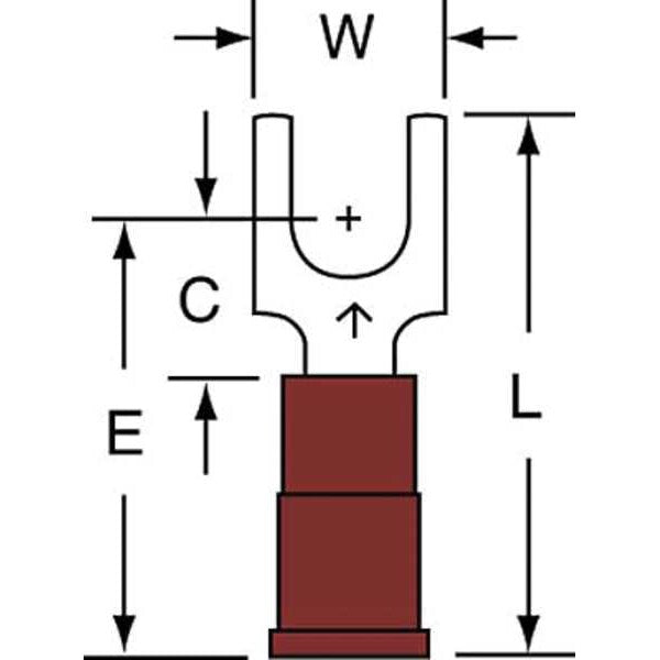 SKU G5638893CategoriesDescription Fork Terminal, Contact Finish Tin, Contact Material Copper, Insulation Color Red, Insulation Material Nylon, Maximum Operating Temperature 221 Degrees F, Maximum Voltage 600 V, Maximum Wire Size 18 AWG, Stud Size #6, Termination Style Crimp, RoHS Compliant Yes, Seam Style Butted, Standards CSA Certified, UL Listed, Barrel Length 44 in, Barrel Style Insulation Grip, Connection Material Copper, Connection Type Crimp, Minimum Wire Size 22 AWG, Overall Length 0.84 in, Package Quantity 1000graingerSKU: 2DTJ2, mscSKU: , zoro_no: G5638893, mongo_id: 65bbe5d73aaddbd5a9fedb0a