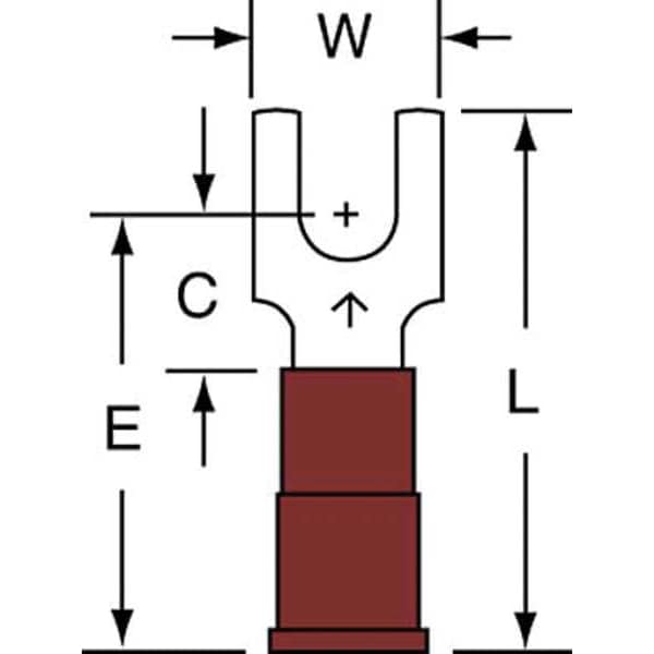 SKU G3105252CategoriesDescription Fork Terminal, Contact Finish Tin, Contact Material Copper, Insulation Color Red, Insulation Material Nylon, Maximum Operating Temperature 221 Degrees F, Maximum Voltage 600 V, Maximum Wire Size 18 AWG, Stud Size #10, Termination Style Crimp, RoHS Compliant Yes, Seam Style Butted, Standards CSA Certified, UL Listed, Barrel Length 44 in, Barrel Style Insulation Grip, Connection Material Copper, Connection Type Crimp, Minimum Wire Size 22 AWG, Overall Length 0.89 in, Package Quantity 100graingerSKU: , mscSKU: , zoro_no: G3105252, mongo_id: 65bbe61c3aaddbd5a900a8ab