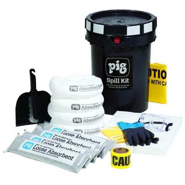 SKU G8076434CategoriesDescription Spill Kit, Fluids Absorbed Oil-Only, Volume Absorbed Per Kit 5 gal, Container Type Portable Bag, 0.05 cu ft Container Capacity, 10 in W x 22 in L Container Size, Black, Filled, Sorbents Included (25) 15 in x 20 in Stat-Mat Absorbent Pads, (3) External dia 3 in x 48 in Static-Dissipative Absorbent Socks, Dry Loose Absorbent in Spill Pouch, PPE Included Apron, Economy Goggle, Pair of 13 in L Neoprene GlovesgraingerSKU: 55VE30, mscSKU: , zoro_no: G8076434, mongo_id: 65bbea6522d7a989a99b08d8