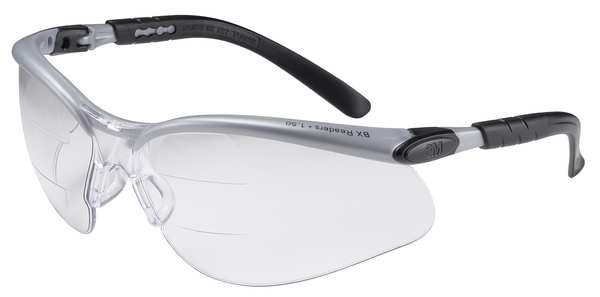 SKU G0190635CategoriesDescription Bifocal Safety Reading Glasses, +1.50 Diopter Strength, Gray Lens Color, Anti-Fog Lens Coating, Wraparound Eyewear Frame Design, Black; Gray Frame Color, Plastic Frame Material, Polycarbonate Lens Material, Silver/Black Temple Color, Adjustable Temple Style, 0.999 UV Protection, Eyewear Venting Non-Vented, X-Ray Detectable No, Includes Adjustable Temples Length, Lens Angle and Nose Bridge, Standards ANSI Z87.1-2003, CSA Z94.3-2002, Eyewear Frame Style Half-Frame, Eyewear Size M, Foam Lined No$24.81 / eachWeb price