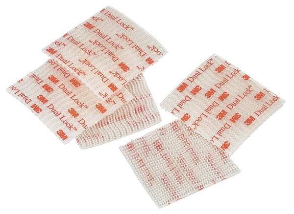Description Reclosable Fastener Shapes, Self-Mating, Hook and Loop Shape Square, Length 1 in, Width 1 in, Color Clear, Flame Retardant No, Backing Material Polypropylene, Shear Strength 32 psi, Adhesive Type Acrylic Adhesive, Characteristics Pressure Sensitive, Package Quantity 100