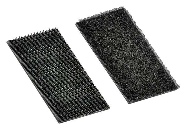 Description Reclosable Fastener Shapes, Self-Mating, Hook and Loop Shape Strip, Length 3 in, Width 1 in, Color Black, Flame Retardant No, Backing Material Polypropylene, Shear Strength 32 psi, Adhesive Type Acrylic Adhesive, Characteristics Industrial Hook, Pressure Sensitive, Package Quantity 100