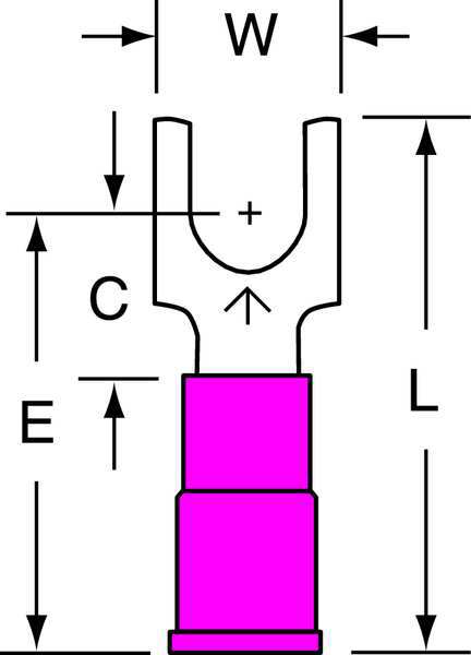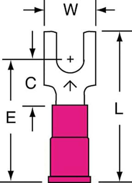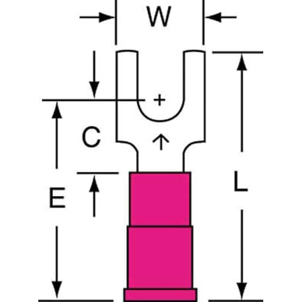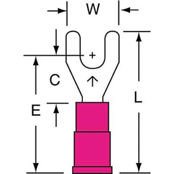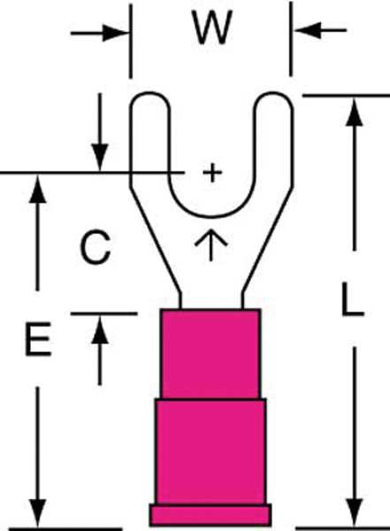 Description Fork Terminal, Insulation Color Red, Stud Size #8, Standards CSA Certified, UL Listed, Connection Material Copper, Connection Type Crimp, Insulation Type Vinyl, Overall Length 0.85 in, Package Quantity 1000