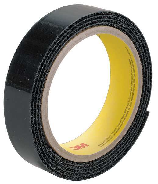 • Reclosable Fastener, Rubber Adhesive, 150 ft, 1 in Wd, Black, 3 PK