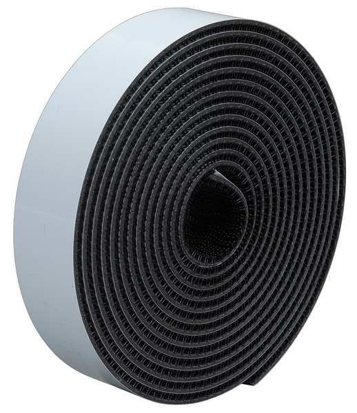 • Reclosable Fastener, Rubber Adhesive, 30 ft, 1 in Wd, Black