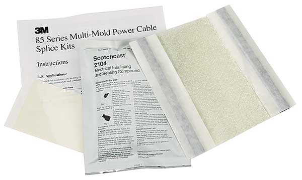 SKU G2865046CategoriesDescription Resin Compound Splice Kit, Body Material Epoxy, Color Black, Compatible with Product Type Underground Cables, Container Type Closed Mixing Pouch, For Maximum Cable OD 1.5 in, For Wire Type Power Cables, Includes Electrical Insulating Resin, Instruction Sheet, Plastic Mold, Sealing Compound and Pressure-Sensitive Adhesive-Film-Sealing Strip, Maximum Operating Temperature 194 Degrees F, Maximum Voltage 1,000 V, Minimum Wire Size 8 AWG, Maximum Wire Size 4 AWG, Resin Material Resin 4NgraingerSKU: 4DYX7, mscSKU: , zoro_no: G2865046, mongo_id: 65bbe7c49a749db822756da4