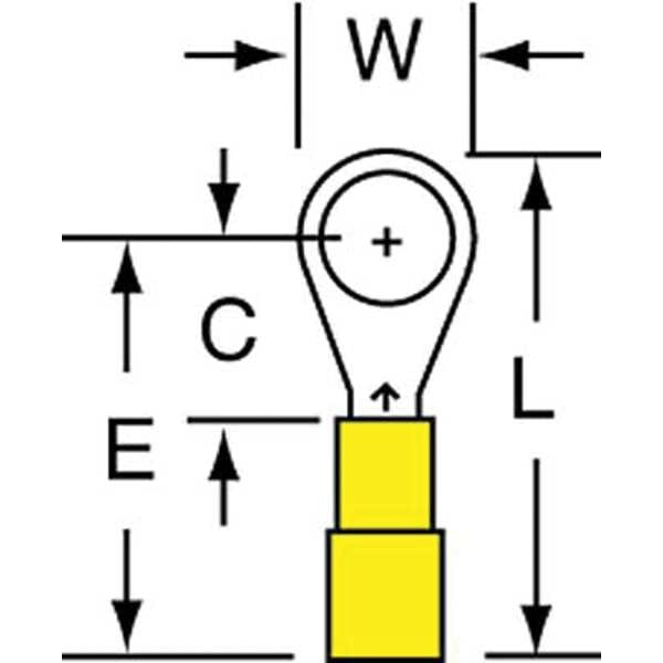 SKU G5679974CategoriesDescription Ring Terminal, Insulation Color Yellow, Insulation Coverage Partial Coverage, Insulation Material Nylon, Maximum Operating Temperature 221 Degrees F, Maximum Voltage 1,000 V, Minimum Wire Size 26 AWG, Maximum Wire Size 24 AWG, Termination Style Crimp, Tongue Width 0.2 in, Contact Finish Tin, Contact Material Copper, Standards CSA Certified, UL Listed, Barrel Inside Diameter 0.03 in, Barrel Style Brazed, Compatible with Product Type Building Wire, Fixtures or Luminaires, SignsgraingerSKU: 2DTV2, mscSKU: , zoro_no: G5679974, mongo_id: 65bbe6e93aaddbd5a9060835