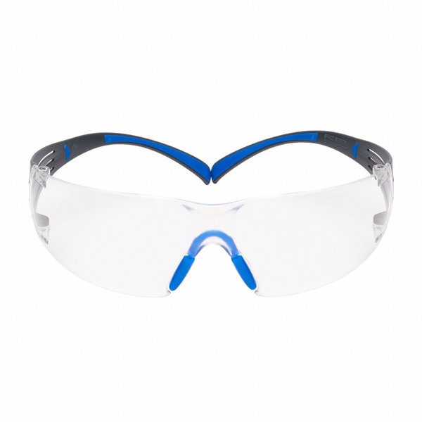Safety Glasses, SecureFit Series, Scotchgard Anti-Fog, Blue/Gray Temples, Clear Lens