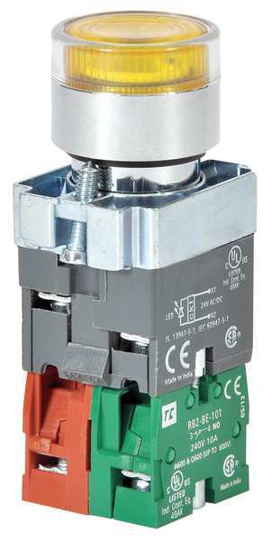 SKU G4986021CategoriesDescription Illuminated Push Button, 22 mm, Momentary, Type of Operator Round Guarded Button, Basic Material Metal, Metal Head Material, 1NO/1NC Contact Form, Chrome Bezel, Color Yellow, Lamp Module Voltage 125V AC/DC, Lamp Module Type Full Voltage, Lamp Type LED, Lamp Voltage 125V AC/DC, Contact Rating 1.2 A @ 600V AC, 3 A @ 240V AC, 6 A @ 120V AC, NEMA Contact Rating Designation A600/Q600, Number of Operators 1, NEMA Rating 1, 12, 13, 2, 3, 4, 4X, IP Rating 65, Standards CE, CSA, IEC, ULgraingerSKU: 30G207, mscSKU: , zoro_no: G4986021, mongo_id: 65bbe92322d7a989a9938716