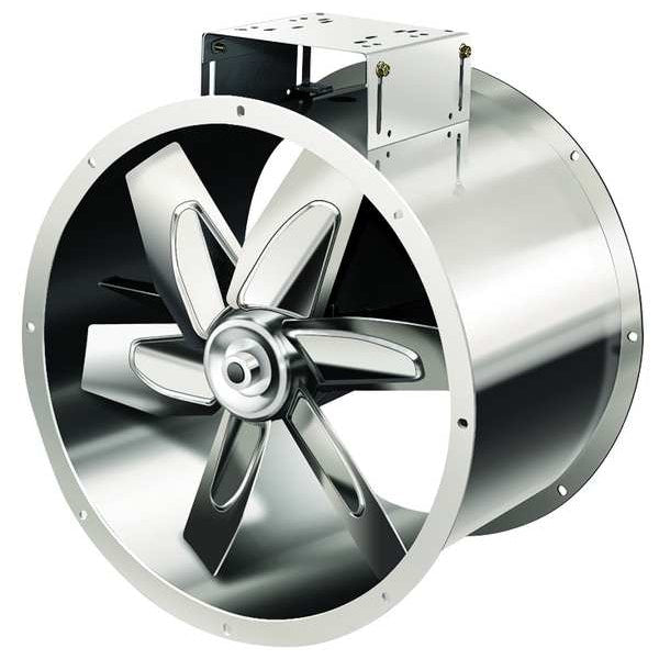 Description Tubeaxial Fan, Drive Type Belt Drive, Includes Drive Package Yes, Includes Motor Yes, Blade Diameter 30 in, Nameplate Voltage 208-230/460V AC, Phase 3, Motor Horsepower 1 1/2 hp, Airflow @ 0.000 in SP 10,955 cfm, Maximum Noise Level @ 5 Feet 31 sones, Assembly Unassembled, For Air Type Corrosive Vapor, Blade Material Stainless Steel, Housing Material Stainless Steel, Number of Blades 6, Number of Speeds 1, Motor Enclosure Totally Enclosed Fan Cooled, Standards AMCA