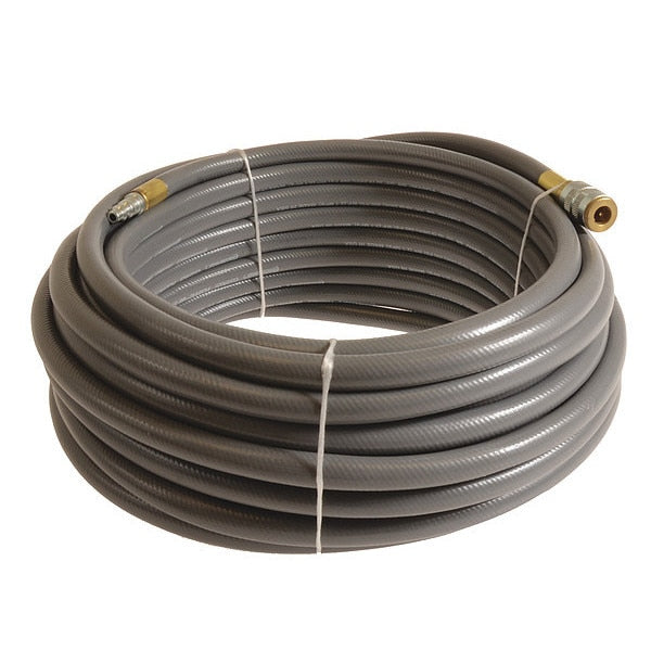 $37.94 / eachWeb price3/8" x 25 ft PVC Coupled Multipurpose Air Hose 300 psi GYSKU G5242216CategoriesDescription Air Hose, Hose Inside Dia. 3/8 in, Hose Outside Dia. 5/8 in, Hose Length 25 ft, Hose Color Gray, Hose Tube Material PVC, Hose Cover Material PVC, Burst Pressure 1,200 psi, Max. Working Pressure @ 70 F 300 psi, Temp. Range -10 Degrees to 158 Degrees F, Hose Reinforcement Type Spiral, Hose Reinforcement Material Polyethylene, Safety Factor 4:1, Hose Fitting A Material Brass, Hose Fitting B Material Brass, Hose Fitting A Type MNPT, Hose Fitting B Type MNPT, Hose Fitting A Size 1/4 ingraingerSKU: 50JE89, mscSKU: 55889992, zoro_no: G5242216, mongo_id: 65bbea5e22d7a989a99ae76c