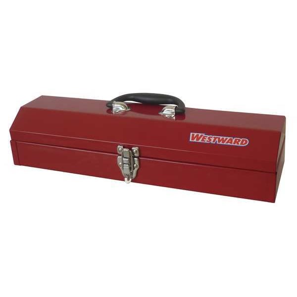19-1/4"W Steel, Red Portable Tool Box, Powder Coated, 4"H