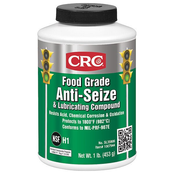 Food Grade Anti-Seize, H1 Food Grade, 16 oz Brush-Top Can, WhiteSKU G1453645CategoriesDescription Food Grade Anti-Seize, 16 oz, Brush-Top Can, Non-Metallic, Paste, -65 Degrees F, 1,800 Degrees F, CRC, White, Non-FlammablegraingerSKU: 4JB58, mscSKU: , zoro_no: G1453645, mongo_id: 65bbe7a79a749db82274c4fa