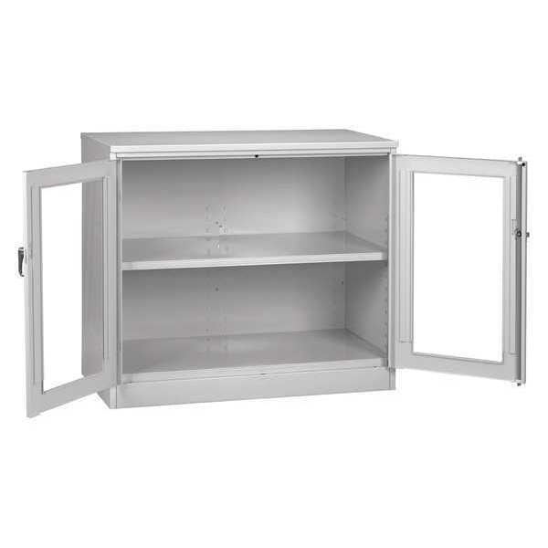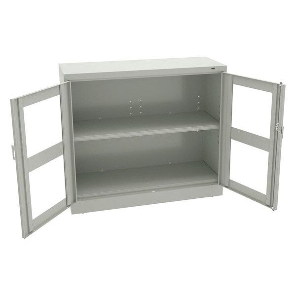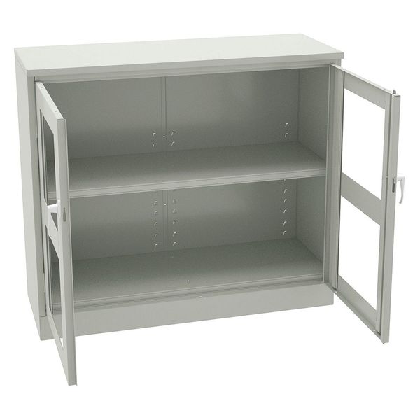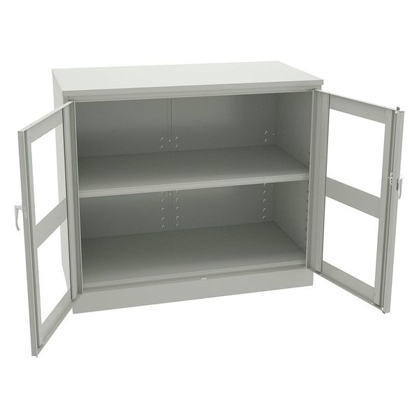 SKU G7264327CategoriesDescription Storage Cabinet, Base Type Leveling, Body Panel Type Solid, Cabinet Color Light Gray, Cabinet Material Steel, Cabinet Storage Components Shelves, Door Handle Type Swing, Door Type Clearview, Duty Rating Medium Duty, For Use Indoors/Outdoors No, Frame Assembled Unassembled, Load Capacity per Shelf 400 lb, Lock Type Keyed, Mobility Stationary, Mounting Location Freestanding, Number of Shelves 2, Overall Depth 18 in, Overall Height 42 in, Overall Width 48 in, Audit Trail Storage NonegraingerSKU: 8ED42, mscSKU: , zoro_no: G7264327, mongo_id: 65bbe9b522d7a989a9970d90