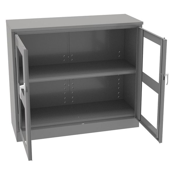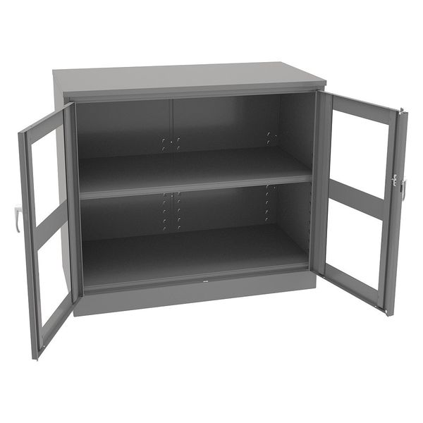 SKU G7264336CategoriesDescription Storage Cabinet, Base Type Leveling, Body Panel Type Solid, Cabinet Color Medium Gray, Cabinet Material Steel, Cabinet Storage Components Shelves, Door Handle Type Swing, Door Type Clearview, Duty Rating Medium Duty, For Use Indoors/Outdoors No, Frame Assembled Unassembled, Load Capacity per Shelf 400 lb, Lock Type Keyed, Mobility Stationary, Mounting Location Freestanding, Number of Shelves 2, Overall Depth 18 in, Overall Height 42 in, Overall Width 48 in, Audit Trail Storage NonegraingerSKU: 8PGK3, mscSKU: , zoro_no: G7264336, mongo_id: 65bbe98f22d7a989a996267b