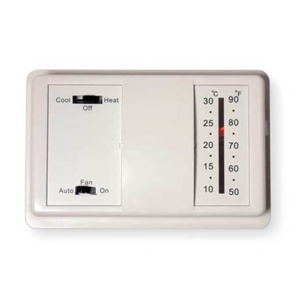 SKU G2165274CategoriesDescription Low Voltage Thermostat, Terminal Designations G, RC, RH, W, Y, System Switching Heat-Cool-Off, Fan Switching Auto-On, Automatic Changeover No, Dual Transformer Compatible Yes, Power Method Hardwired, Voltage 20 to 30V AC, 750mV Compatible Yes, Mounting Horizontal or Vertical, Height 5 in, Width 3 1/4 in, Depth 1 5/16 in, Color White, Control Range 50 Degrees to 90 Degrees F, Features Mercury Free, For Use With Gas, Oil, Electric Heat and Cool SystemgraingerSKU: 4PU47, mscSKU: , zoro_no: G2165274, mongo_id: 65bbe8ef22d7a989a99244fc