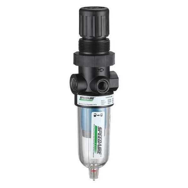 SKU G1570414CategoriesDescription Filter-Regulator, Filter Bowl Material Polycarbonate with Guard, Air Inlet Size 1/2 in, Air Inlet Type NPT, Maximum Flow Rate 212 cfm, Filter Rating 40 micron, Filter Type Particulate, Maximum Operating Pressure 150 psi, Drain Type Manual, Pressure Gauge Included Yes, Body Material Aluminum, Overall Width 3 1/8 in, Series Standard Duty, Adjustment Location Top, Adjustment Mechanism Knob, Adjustment Mechanism Material Reinforced Nylon, Air Flow Direction Left to Right, Air Inlet Gender FemalegraingerSKU: 4ZL01, mscSKU: , zoro_no: G1570414, mongo_id: 65bbe95522d7a989a994cdf2