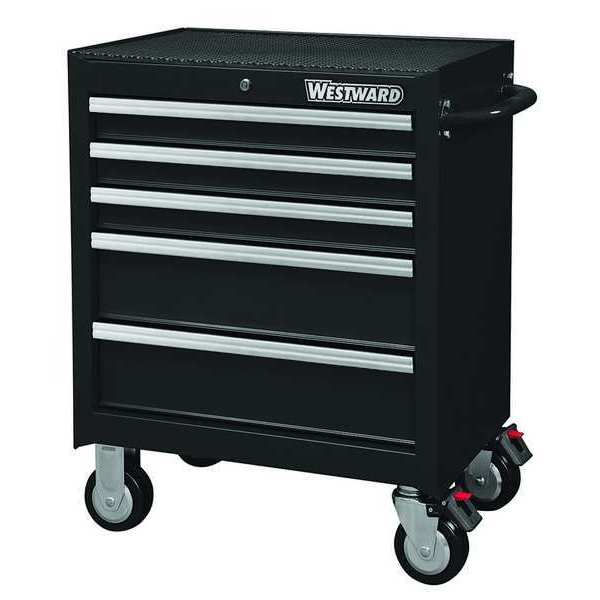 Description Rolling Tool Cabinet, Heavy Duty, Width 26 11/16 in, Depth 18 in, Height 33 25/64 in, Number of Drawers 5, Black, Drawer Color Black, Drawer Capacity 100 lb, Ball Bearing Drawer Slides, Powder Coated Finish, Storage Capacity 7,303 cu in, Load Rating 1320 lb, Caster Size 5 in x 2 in, Number of Shelves 0, Steel, Drawers: 18, Body: 20 Gauge, Work Surface Material Polyethylene Foam, Caster Wheel Material Polypropylene, Caster Type Solid, Keyed, Tubular Side Handles