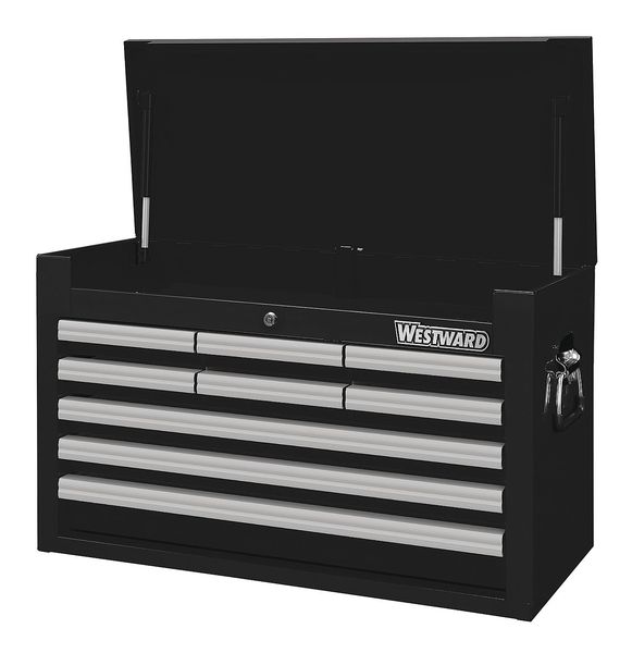 Description Top Chest, Body Color Black, Body Finish Powder Coated, Body Gauge 20 ga, Body Material Steel, Drawer Color Black, Drawer Finish Powder Coated, Drawer Gauge 22 ga, Drawer Liner Material Polyethylene Foam, Drawer Material Steel, Drawer Range 6 to 10, Drawer Slide Features Fully Extending, Drawer Slide Function Fully Extended Ball Bearing, Drawer Slide Type Ball Bearing, Duty Rating Light Duty, Features Aluminum Drawer Pulls, Gas Lift Lid, Body Finish/Color Powder Coated Black