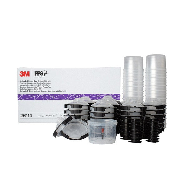 $123.11 / eachWeb priceSpray Cup System Kit, 3 fl. oz. CapacitySKU G6268619CategoriesDescription Spray Cup System Kit, Screw, 3 fl oz Capacity, For Use With 3M(TM) PPS(TM) Paint Preparation Systems, Includes (32) Sealing Plugs, (50) Disposable Lids, (50) Liners, 200 Micron FiltergraingerSKU: 478A81, mscSKU: , zoro_no: G6268619, mongo_id: 65bbe9a522d7a989a996c3e1
