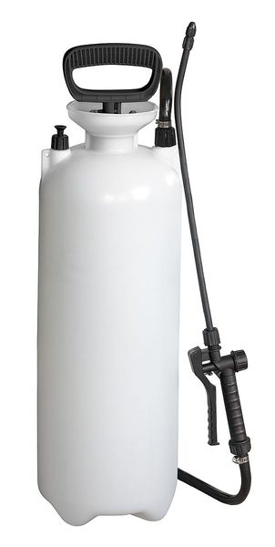 • 3 gal. Handheld Sprayer, Polyethylene Tank, Cone Spray Pattern, 42" Hose Length, 45 psi Max Pressure