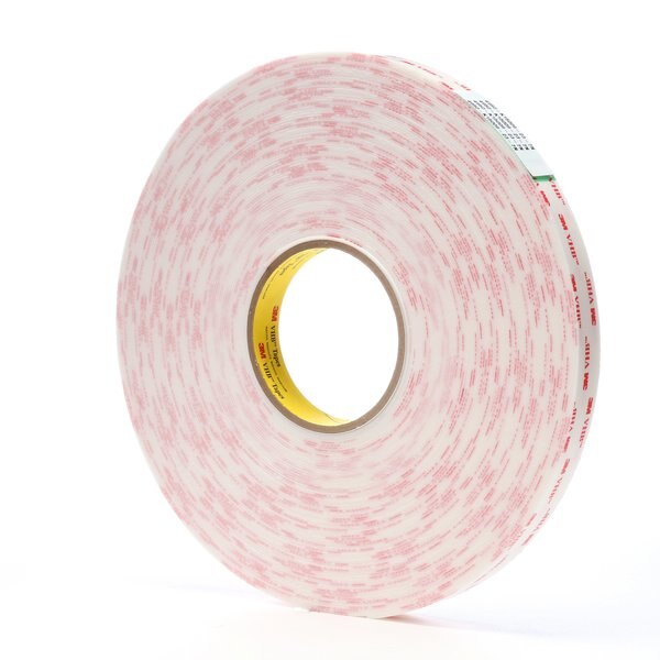 Description Tape Type Double-Sided VHB (Very High Bond) Tape, Tape Sub-Type Double-Sided VHB Firm Foam Tape, Tape Brand 3M(TM), Sub-Brand VHB(TM), Series 4950, Imperial Tape Length 36 yd, Imperial Tape Width 1/2 in, Imperial Tape WxL 1/2 in x 36 yd, Maximum Tape Performance Temperature 200 Degrees F, Minimum Tape Performance Temperature -25 Degrees F, Common Industry Assembly & Manufacturing, Automotive, Aviation, Construction, Electronics, General Maintenance & Repair, Metalworking, Warehouse