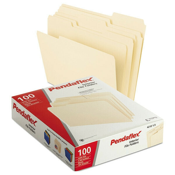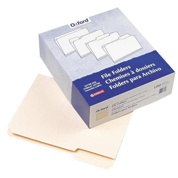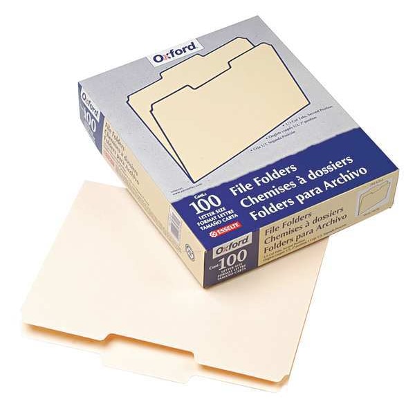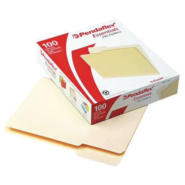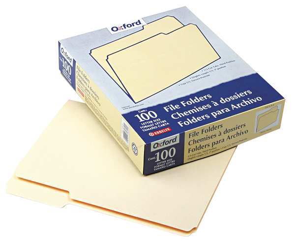 Description File Folders, Size Letter, 1/3 Tab Cut, Height 8 1/2 in, Width 11 in, Color Manila, Package Quantity 100