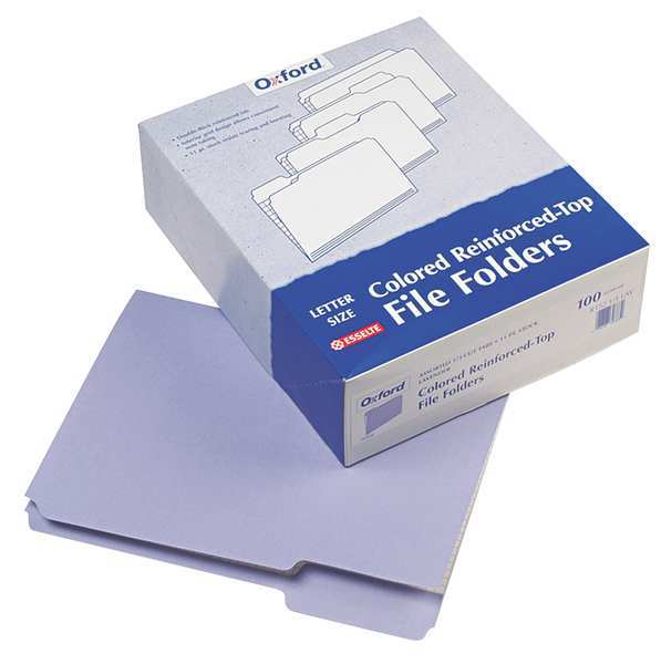 Description File Folders, Size Letter, 1/3 Tab Cut, Height 8 1/2 in, Width 11 in, Color Lavender, Package Quantity 100