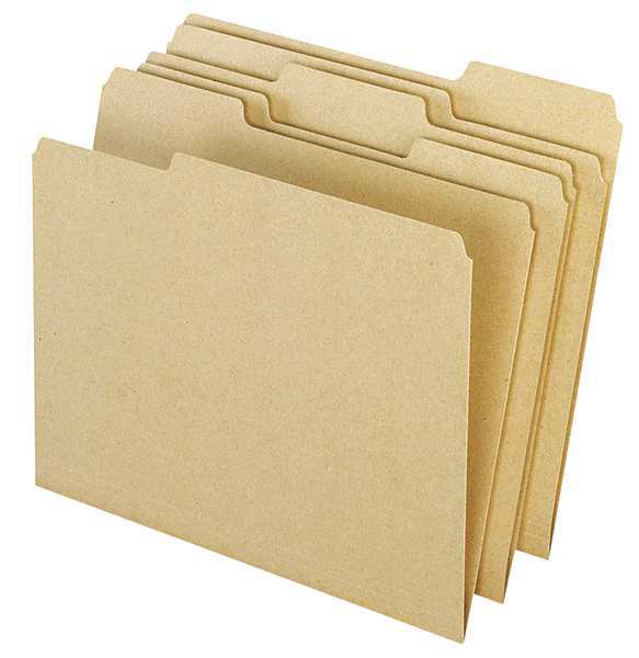 Description File Folders, Size Letter, 1/3 Tab Cut, Height 8 1/2 in, Width 11 in, Color Natural, Package Quantity 100