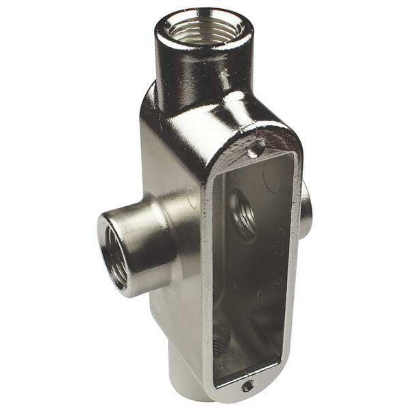 SKU G9604034CategoriesDescription Conduit Outlet Body, Overall Width 2 1/8 in, Overall Height 2 in, Overall Length 5 15/16 in, Weight 1.28 lb, Trade Size 1/2 in, Compatible Conduit Trade Size 1/2 in, Hub Size 1/2 in, Stainless Steel, Compatible Conduit Type 1/2 in, Indoor/Outdoor Usage Indoor/Outdoor, Back Type Flat, Body Capacity 5 cu in, Body Style T, Body Type Conduit Outlet Body with Cover, Color Silver, Connection Orientation Multi-Angle, Connection Type Threaded, Cover Included Yes, Finish Polished, For Use With ThreadedgraingerSKU: 36LL93, mscSKU: , zoro_no: G9604034, mongo_id: 65bbe91d22d7a989a9936598