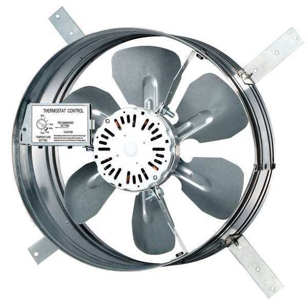 SKU G4274225CategoriesDescription Attic Exhaust Fan, Control Type Thermostat, Blade Material Steel, Exhaust Airflow @ 0.000 in SP 1,140 cfm, Fire Safety Shut-Off No, High-Efficiency Motor No, Housing Material Steel, Includes Humidistat No, Includes Shutter No, Includes Thermostat Yes, Maximum Attic Area 1,630 sq ft, Motor Horsepower 1/16 hp, Mounting Location Gable, Nameplate Voltage 120V AC, Overall Diameter 15 in, Overall Height 8 in, Overall Length 15 in, Overall Width 15 in, Dome Shape Not ApplicablegraingerSKU: 10W193, mscSKU: , zoro_no: G4274225, mongo_id: 65bbe7563aaddbd5a908baa7