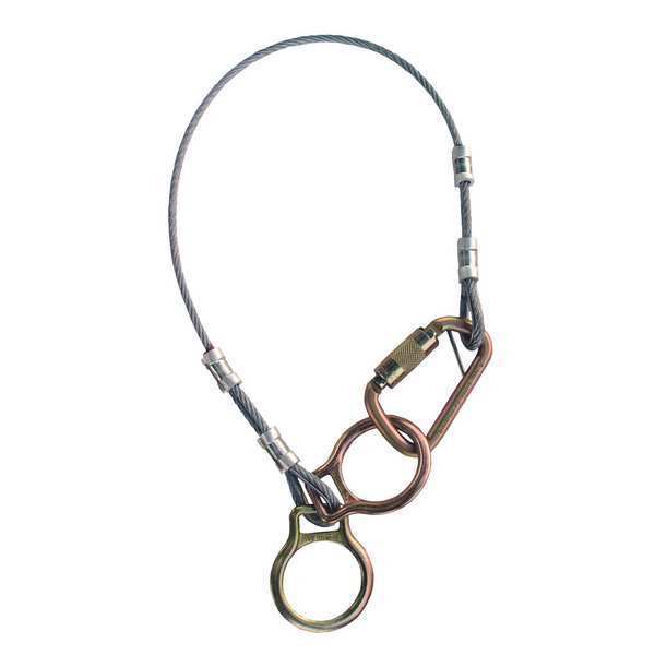 Description Tie-Off Adapter, Includes D-Ring, D-Ring Material Steel, Overall Length 3 ft, Pass-Through End D-Ring, Pole Hook Type Tie-Off Adapter, Tie-Off Connector Carabiner, Attachment Point Dual D-Ring, Wear Pad No, Webbing Width Not Applicable, Cable Diameter 0.25 in, Anchor Material Steel, Weight Capacity 310 lb, Anchor Installation Reusable, ANSI Standards Met ANSI Z359.18, OSHA Standards Met OSHA 1910.140, OSHA 1926.502, Mounting Type Tie-Off, Tensile Strength 5,000 lb, Workers per System 1