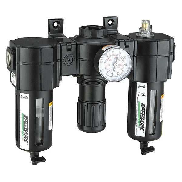 SKU G0833183CategoriesDescription Filter/Regulator/Lubricator, Air Inlet Size 1/2 in, Air Inlet Type NPT, Maximum Flow Rate 60 cfm, Maximum Operating Pressure 150 psi, Filter Rating 5 micron, Filter Bowl Material Polycarbonate, Filter Bowl Capacity 3.5 oz, Lubricator Bowl Capacity 3.5 oz, Drain Type Manual, Overall Width 9 1/8 in, Air Outlet Size 1/2 in, Air Outlet Type NPT, Drain Included Yes, Duty Rating Intermediate Duty, Filter Bowl Guard Included YesgraingerSKU: 7D715, mscSKU: , zoro_no: G0833183, mongo_id: 65bbe7823aaddbd5a909c7d0