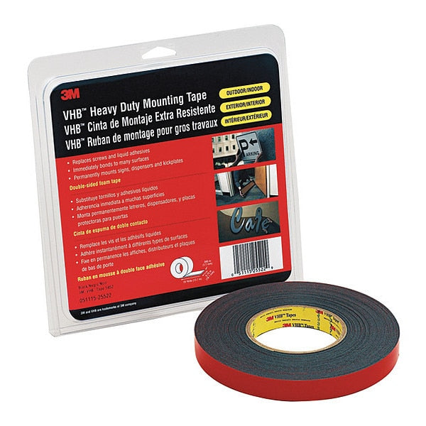 Description Tape Type Double-Sided VHB (Very High Bond) Tape, Tape Sub-Type Double-Sided VHB Conformable Foam Tape, Tape Brand 3M(TM), Sub-Brand VHB(TM), Series 4956, Imperial Tape Length 36 yd, Imperial Tape Width 1/2 in, Imperial Tape WxL 1/2 in x 36 yd, Maximum Tape Performance Temperature 300 Degrees F, Minimum Tape Performance Temperature 40 Degrees F, Common Industry Construction, Electronics, Indoor and Outdoor, Continuous Roll, Surface Compatibility Powder Coated Paints, Tape Thickness 1/32 in