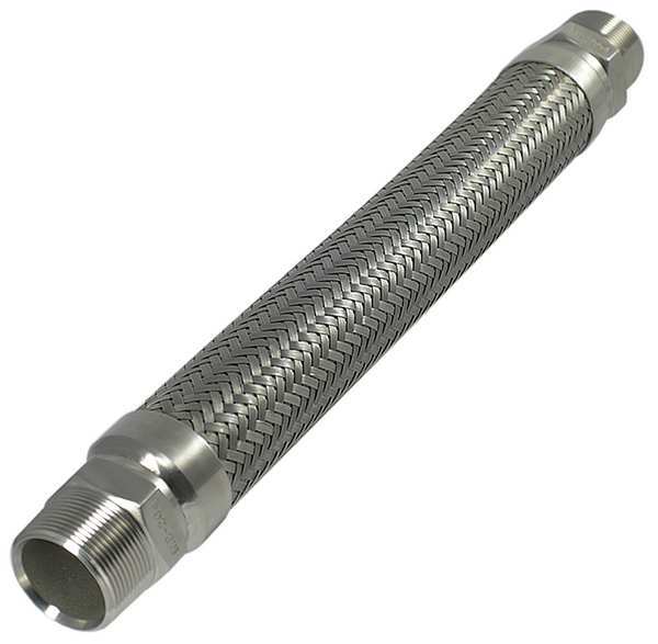 1-1/4" Dia x 24" L SS Flexible Metal HoseSKU G3367551CategoriesDescription Flexible Metal Hose Assembly, Hose Inside Dia. 1 1/4 in, Hose Length 24 in, Hose Tube Material 321 Stainless Steel, Hose Cover Material 304 Stainless Steel, Max. Working Pressure @ 70 F 645 psi, Temp. Range -325 Degrees to 1200 Degrees F, Dynamic Min. Bend Radius (In.) 10 in, Hose Fitting A Material 304 Stainless Steel, Hose Fitting B Material 304 Stainless Steel, Hose Fitting A Type MNPT, Hose Fitting B Type MNPT, Hose Fitting A Size 1 1/4 in, Hose Fitting B Size 1 1/4 ingraingerSKU: 2ZV62, mscSKU: , zoro_no: G3367551, mongo_id: 65bbe8339a749db82277b398