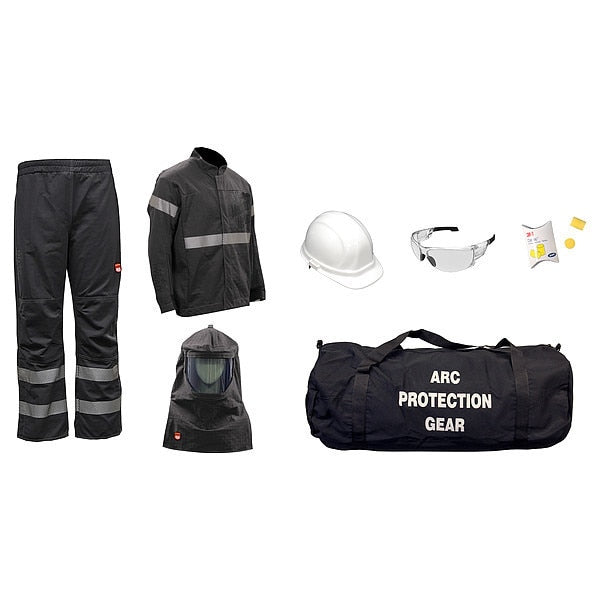 Arc Flash Protection Clothing KitSKU G210042583Categories Arc Flash ProtectionDescription Arc Flash Protection Clothing Kit, Black, Size M, Standards NFPA, Includes Ear Plugs, Gear Bag, Gore Pyrad Hood with Hard Cap, Gore Pyrad Bib Overalls, Gore Pyrad Jacket, Safety Glasses$2,457.49 / eachWeb price -