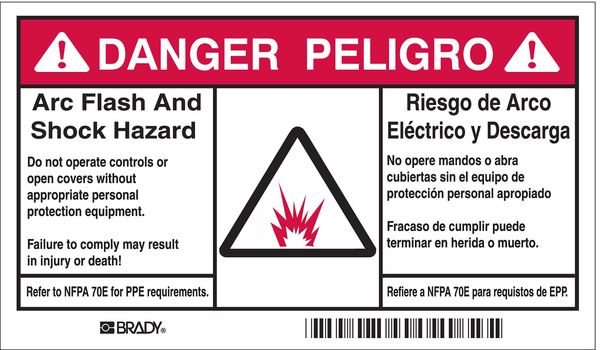 SKU G7618922Categories Arc Flash ProtectionDescription Label, Horizontal Rectangle, Number of Printed Sides 1, English, Spanish, Sign Legend Arc Flash Hazard Do Not Operate Controls Or Open Covers Without Appropriate Personal Protection Equipment. Failure To Comply May Result In Injury Or Death! Riesgo De Arco Electrico No Opera Mandos O Abra Cubiertas Sin El Equipo De Proteccion Personal Apropiado. Fracaso De Cumplir Puede Terminar En Herida O Muerto., Sign Legend Style Symbol and Text, Package Quantity 5graingerSKU: 2XY19, mscSKU: , zoro_no: G7618922, mongo_id: 65bbe85622d7a989a98edcdf