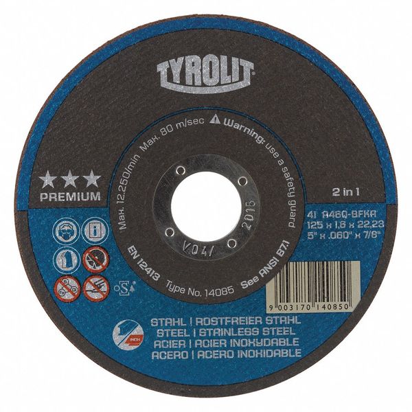 Cut-Off Wheel, T1, 5" x 7/8", 60 Grit, PK15