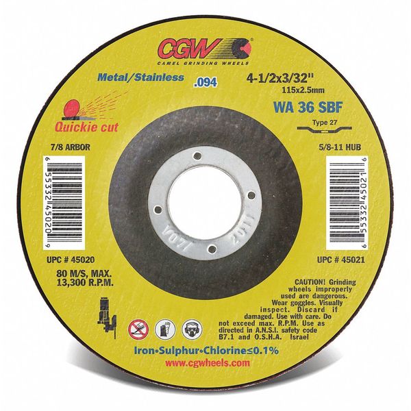 CutOff Whl, 4.5x3/32x7/8, WA36-S-BF, T27SKU G4105147Categories Cut-Off WheelsDescription Abrasive Cut-Off Wheel$2.86 / eachWeb price -