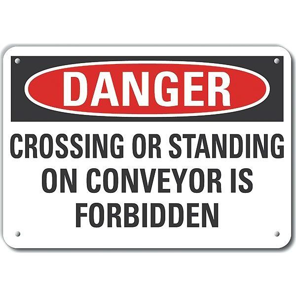 SKU G9486088Categories Material Handling , SafetyDescription Aluminum Conveyor Safety Danger Sign, Vertical Rectangle, Number of Printed Sides 1, English, Sign Format Traditional OSHA, Sign Legend Crossing Or Standing On Conveyor Is Forbidden, Sign Legend Background Color White, Sign Legend Style TextgraingerSKU: 64RE01, mscSKU: , zoro_no: G9486088, mongo_id: 65bbe85622d7a989a98edb07