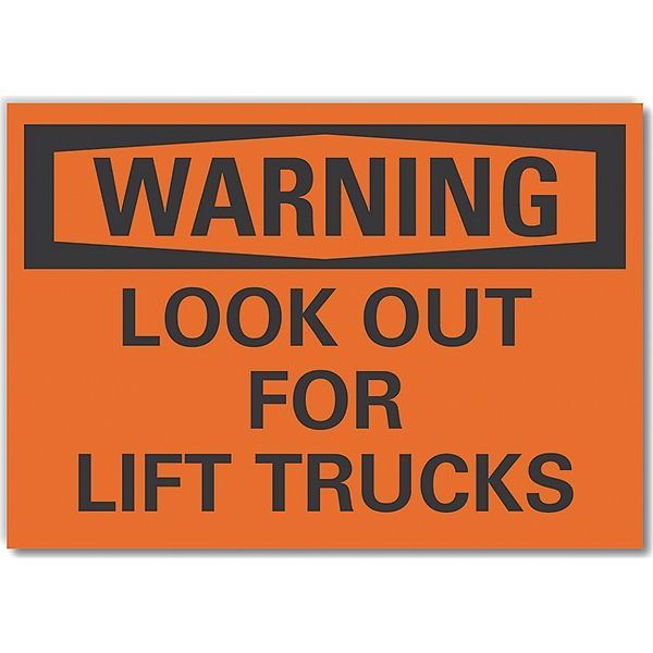 Lift Truck Traffic Danger Label, 5 in H, 7 in W, Polyester, Rectangle, LCU4-0041-ND_7X5SKU G8741595Categories Material HandlingDescription Lift Truck Traffic Danger Label, Horizontal Rectangle, Number of Printed Sides 1, English, Sign Format ANSI/OSHA Format, Sign Legend Look Out For Fork Lifts., Sign Legend Background Color White, Sign Legend Style Symbol and TextgraingerSKU: 62TF05, mscSKU: , zoro_no: G8741595, mongo_id: 65bbe88a9a749db82279835e